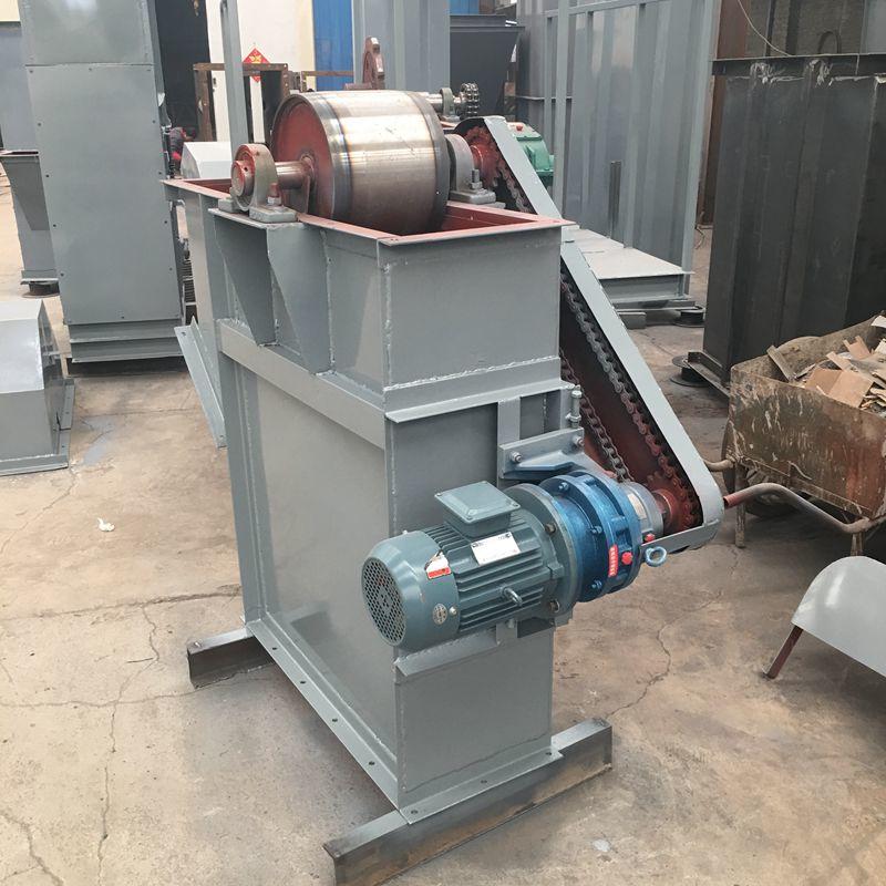 炭黑密封不揚(yáng)塵垂直鏈條式斗式提升機(jī)的牽引構(gòu)件:1.橡膠帶用螺釘和彈性墊片固接在帶子口,帶比斗寬35~40mm,一般膠帶輸送溫度不超過(guò)60℃的物料,耐熱膠帶可以輸送達(dá)到150℃的物料。2.鏈條:?jiǎn)捂湕l固接在料斗后壁上;雙鏈與料斗兩側(cè)相連。鏈?zhǔn)教嵘龣C(jī)當(dāng)料斗寬度為160~250mm時(shí)采用單鏈,當(dāng)料斗為320~630mm時(shí)采用雙鏈,主要缺點(diǎn)是鏈節(jié)之間磨損大,增加檢修次數(shù)。3.鏈輪:斗式提升機(jī)上的傳動(dòng)鏈輪。鏈輪用以與節(jié)鏈環(huán)或纜索上節(jié)距準(zhǔn)確的塊體相嚙合,是一種實(shí)心或帶輻條的齒輪,與滾子鏈嚙合以傳遞運(yùn)動(dòng)。