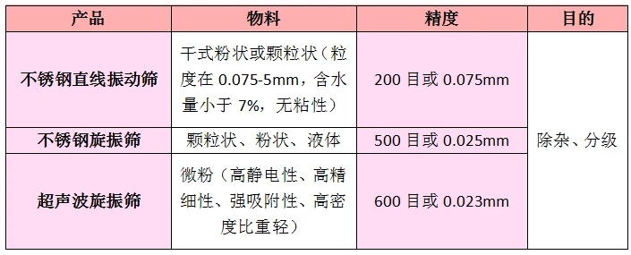 不銹鋼振動篩應用行業(yè):食品行業(yè)專用旋振篩、化工行業(yè)專用旋振篩、制藥行業(yè)專用旋振篩、陶瓷行業(yè)專用旋振篩、磨料磨具行業(yè)專用旋振篩、冶金行業(yè)專用旋振篩等等。