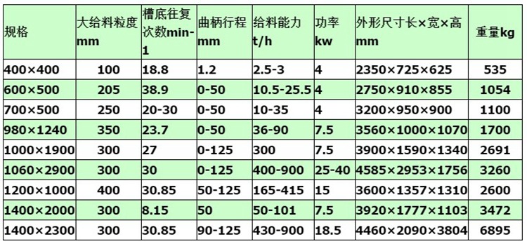槽式給料機(jī)結(jié)構(gòu)參數(shù)