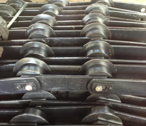 鏈板式輸送機機架由頭架、尾架、中間架組成。用槽鋼、角鋼及加強鋼板焊接而成。該機架中間有四條供滾輪運行的